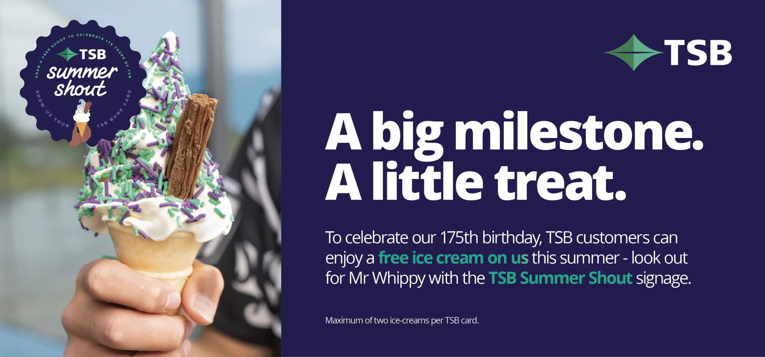 Over the summer (Dec–Feb), TSB Bank wanted a regional activation to connect with communities. Partnering with Mr Whippy, they aimed to give away free ice creams across Taranaki creating a feel-good, visible gesture of local support.